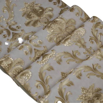 Europeu esculpido papel de parede em relevo para a moderna sala dourada Damasco Vertical Bar Design Floral PVC Material doméstico